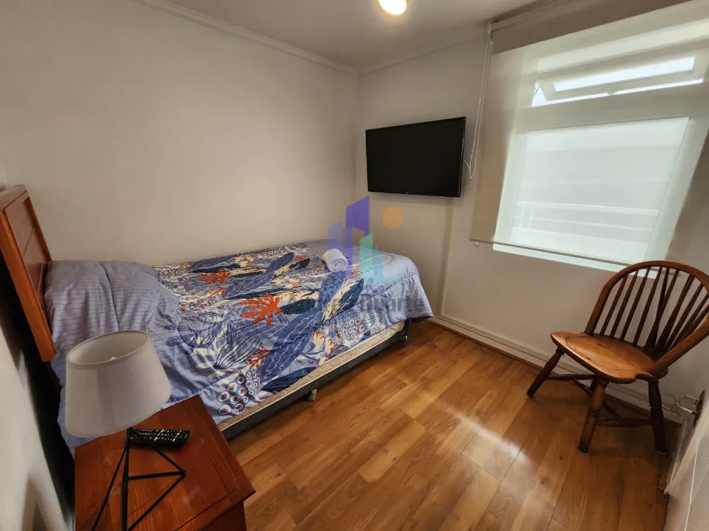 - Segundo dormitorio con cama de plaza y media, velador, closet y televisión